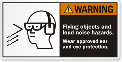 Warning Safety Label: Flying objects and loud noise hazards. Wear approved ear and eye protection. LB-0241 Learn More...