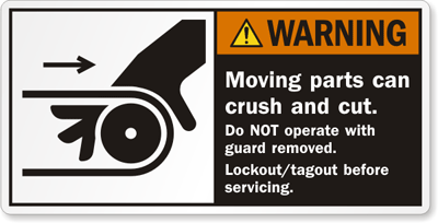 Warning Safety Label: Moving parts can crush and cut. Do not operate with guard removed. Lockout/tagout before servicing LB-0345 Learn More...