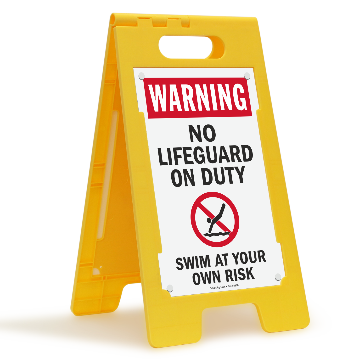 Warning - No Lifeguard On Duty, Swim At Your Own Risk Floor Sign is a great way to warn pool users and promoting pool safety.