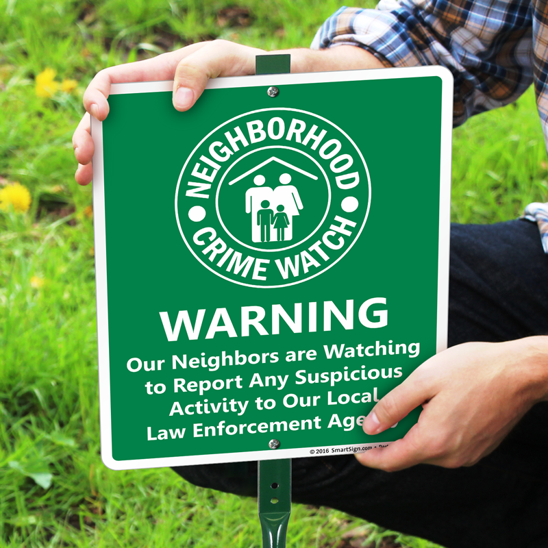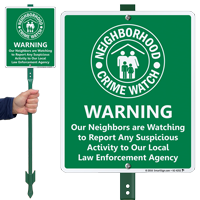 Neighborhood Crime Watch LawnBoss® Sign & Stake Kit: Warning - Our Neighbors Are Watching To Report Any Suspicious Activity K2-4252