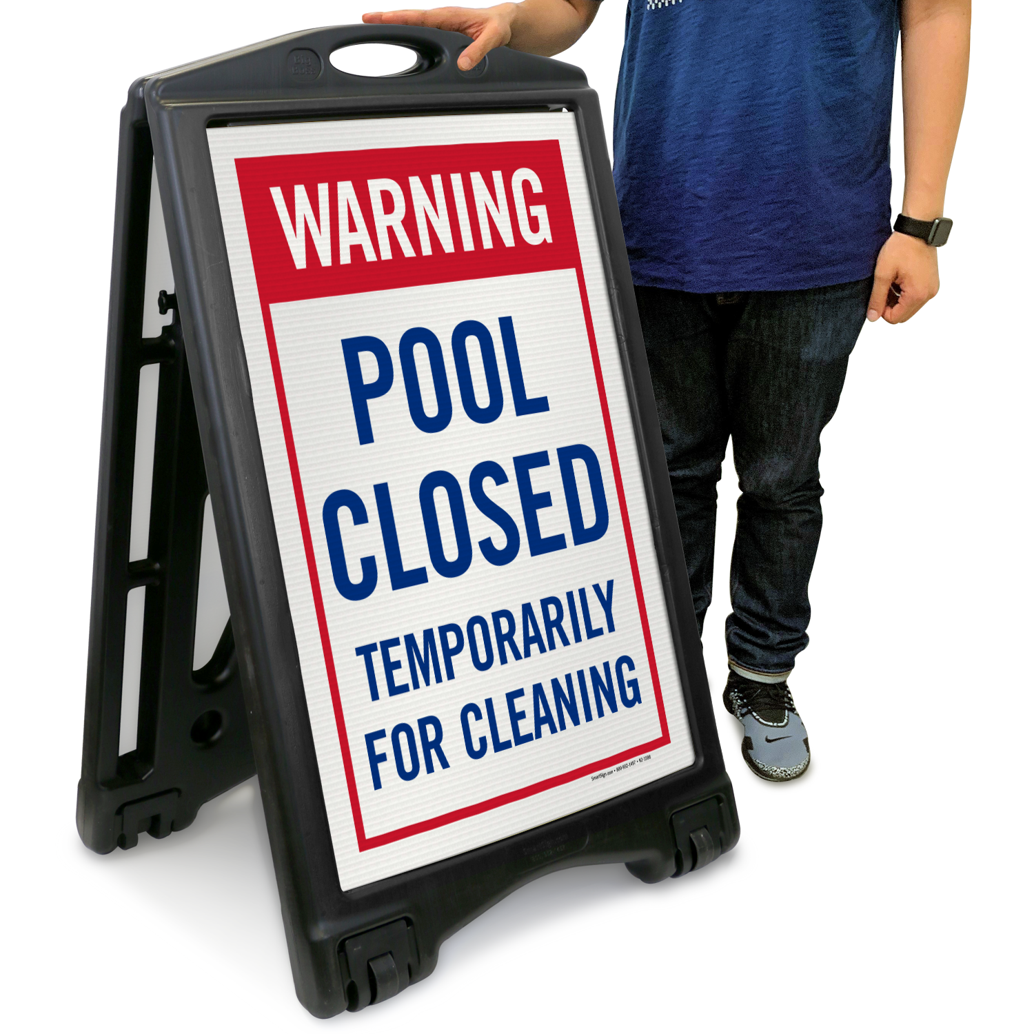 A-Frame Portable Sidewalk Sign: Warning, Pool Closed Temporarily For Cleaning
