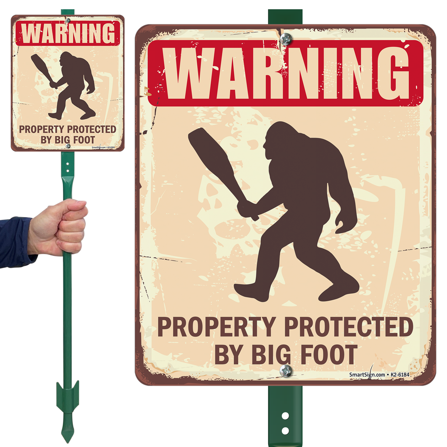 Novelty LawnBoss® Sign & Stake Kit: Warning - Property Protected by Big Foot K2-6184