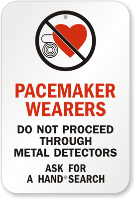 Pacemaker Warning Sign: Pacemaker Wearers Do Not Proceed Through Metal Detectors Ask For A Hand Search (with graphic)