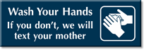 Select-a-Colorâ„¢ Engraved Humorous Sign: Wash Your Hands If You Don't, We Will Text Your Mother SE-6584