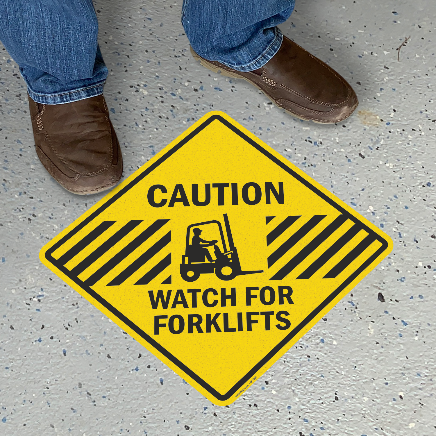 Alert people about the presence of forklifts. Use our easy-to-apply adhesive floor sign that promises maximum visibility for your safety message.