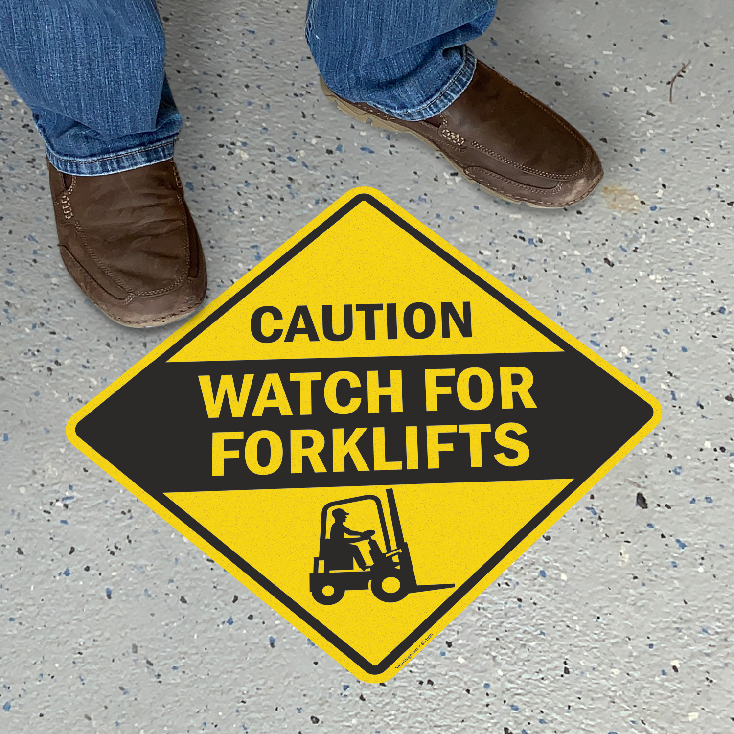 This adhesive floor sign is a rather efficient tool that asks people to be mindful of their surroundings and be aware of forklift movement. It prevents accidents and promotes safety.
