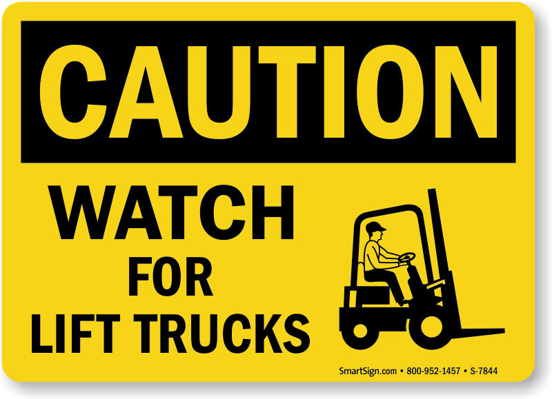 With OSHA caution sign, make people cautious while walking around lift truck traffic in your facility.