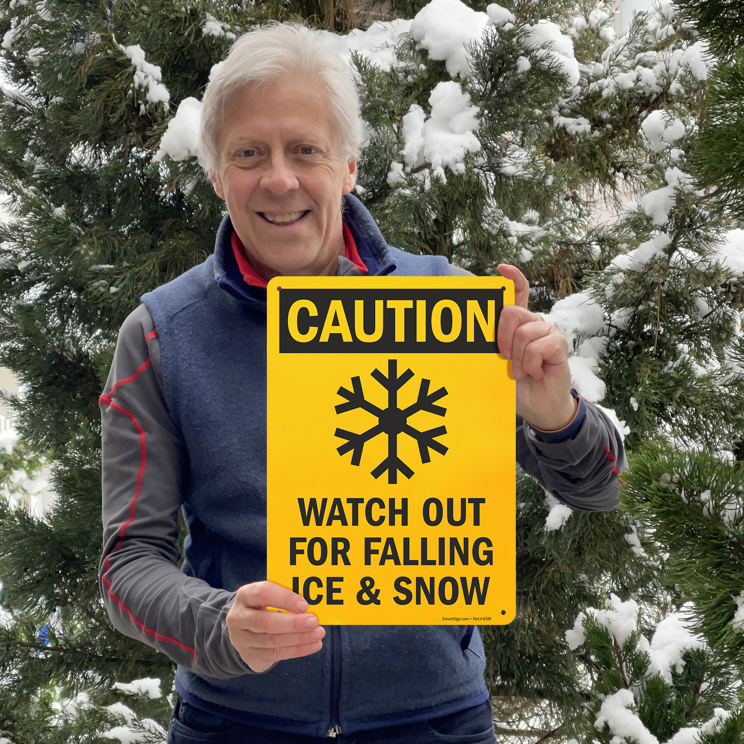 Indicate hazardous conditions to encourage preparedness with this caution sign. A cautionary warning against falling ice and snow makes people watchful and keeps them off danger. Symbol makes sure your message reaches non-English speakers too.
