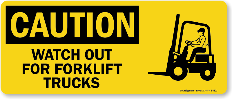 A bright yellow horizontal caution sign is the best way to remind everyone that they need to watch out for forklift trucks in the area.