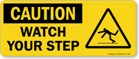 Install this OSHA sign and ask people to walk carefully and be watchful of tripping hazards in your facility.