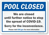 Pool Closed Sign: We Are Closed Until Further Notice To Stop The Spread, Sorry For The Inconvenience S2-4482