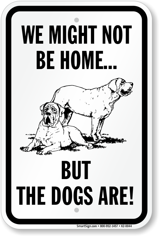 Funny Beware Of Dog Sign: We Might Not Be Home… But The Dogs Are! Sign K2-0044 Learn More...