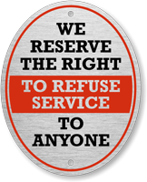 DiamondPlate™ Door Sign: We Reserve The Right to Refuse Service to Anyone DP-0143