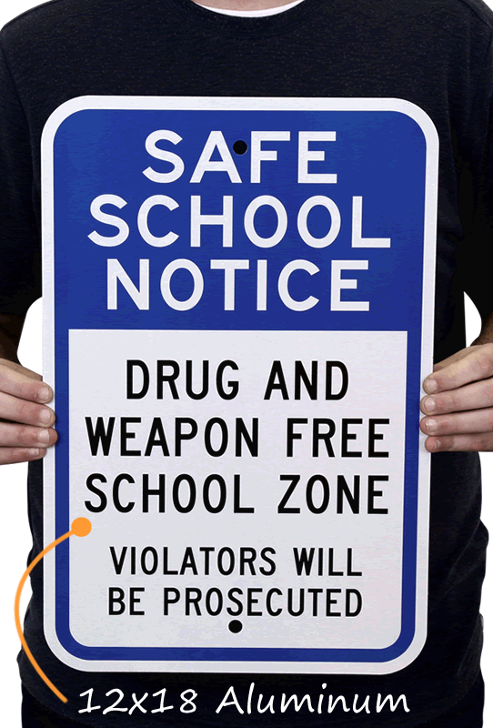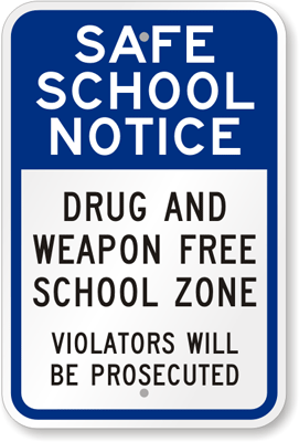 Safe School Notice Sign: Drug And Weapon Free School Zone, Violators Will Be prosecuted K-7078