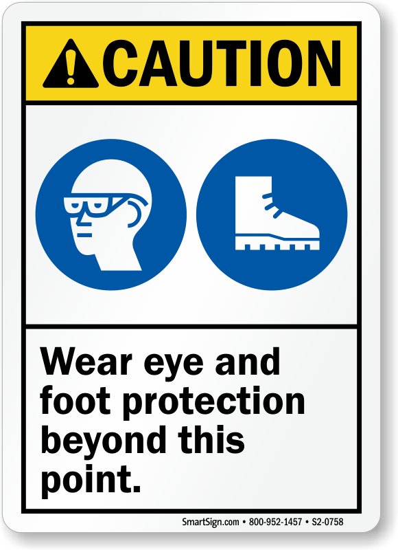 ANSI Caution Sign: Wear Eye And Foot Protection Beyond This Point (With PPE Symbols)