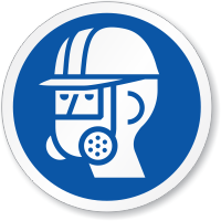 Inform everyone that hard hat and respiratory protection is mandatory before accessing the hazardous zone. Post this ISO Circle Sign and ensure safety for all.