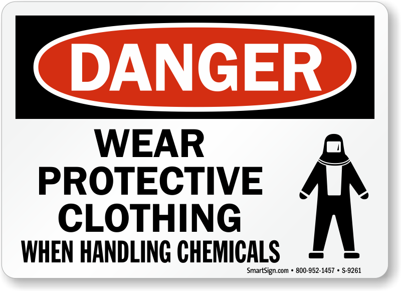 OSHA Danger Sign: Wear Protective Clothing When Handling Chemicals With Graphic