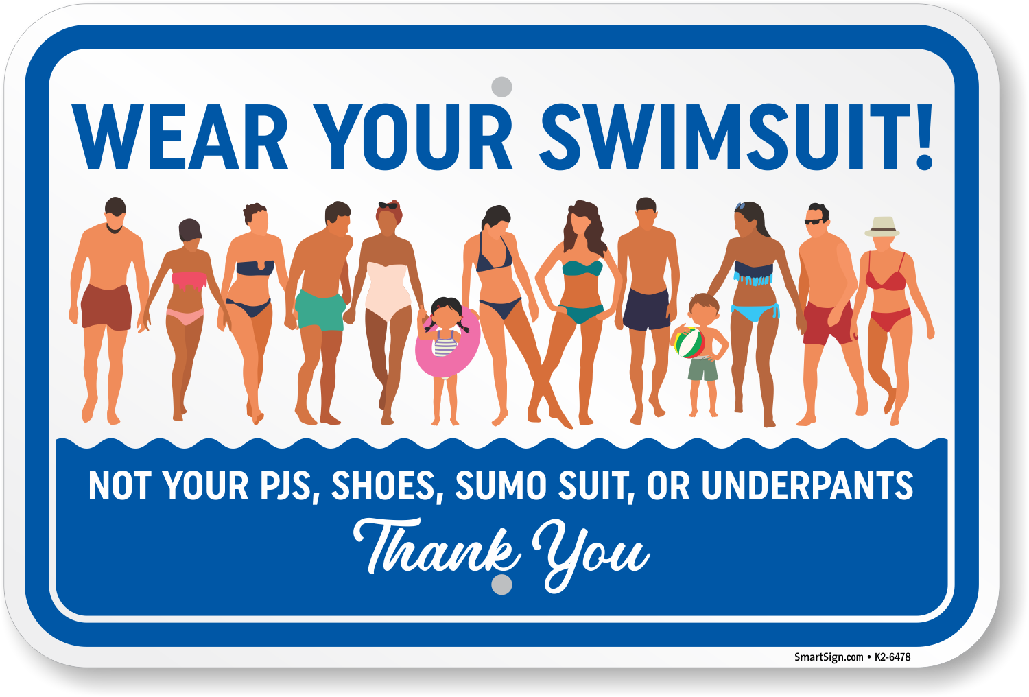 Promote proper swimming attire, which is not only essential for hygiene and safety but also helps maintain a welcoming and comfortable environment for all users.