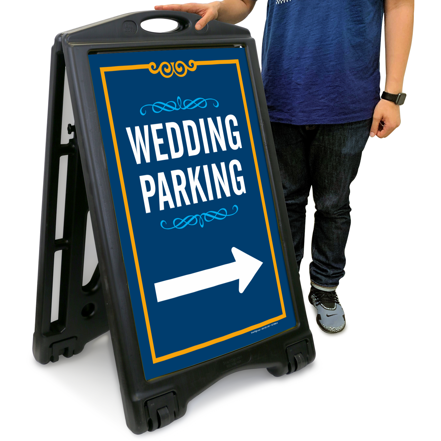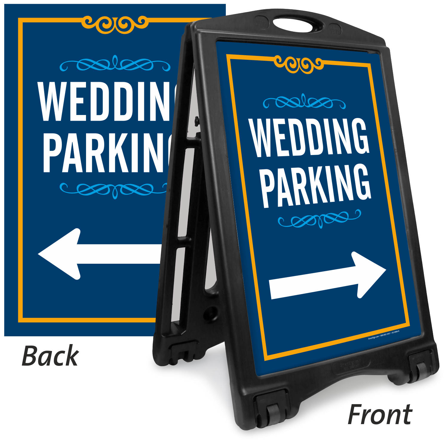 Inform wedding guests about allotted parking space for them with this portable double-sided A-frame sidewalk sign kit.