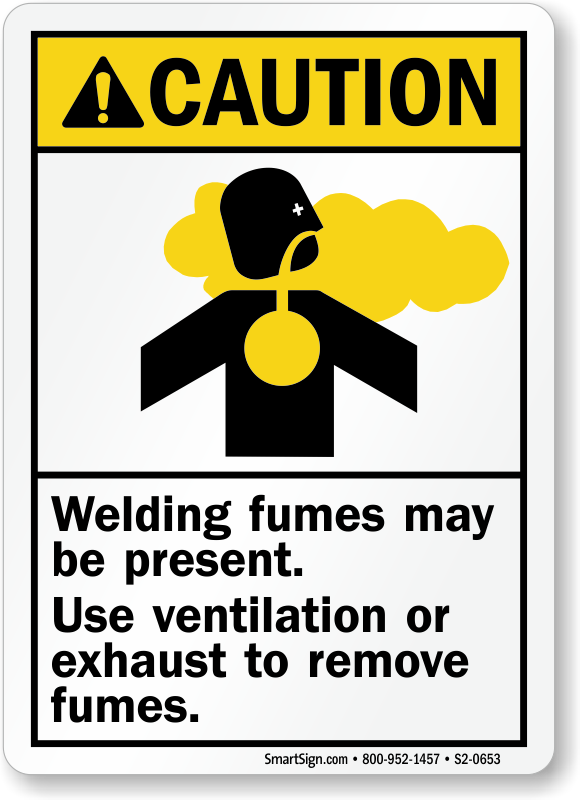 ANSI Caution Sign: Welding Fumes May Be Present, Use Ventilation Or Exhaust To Remove Fumes (With Inhalation Hazard Graphic) S2-0653