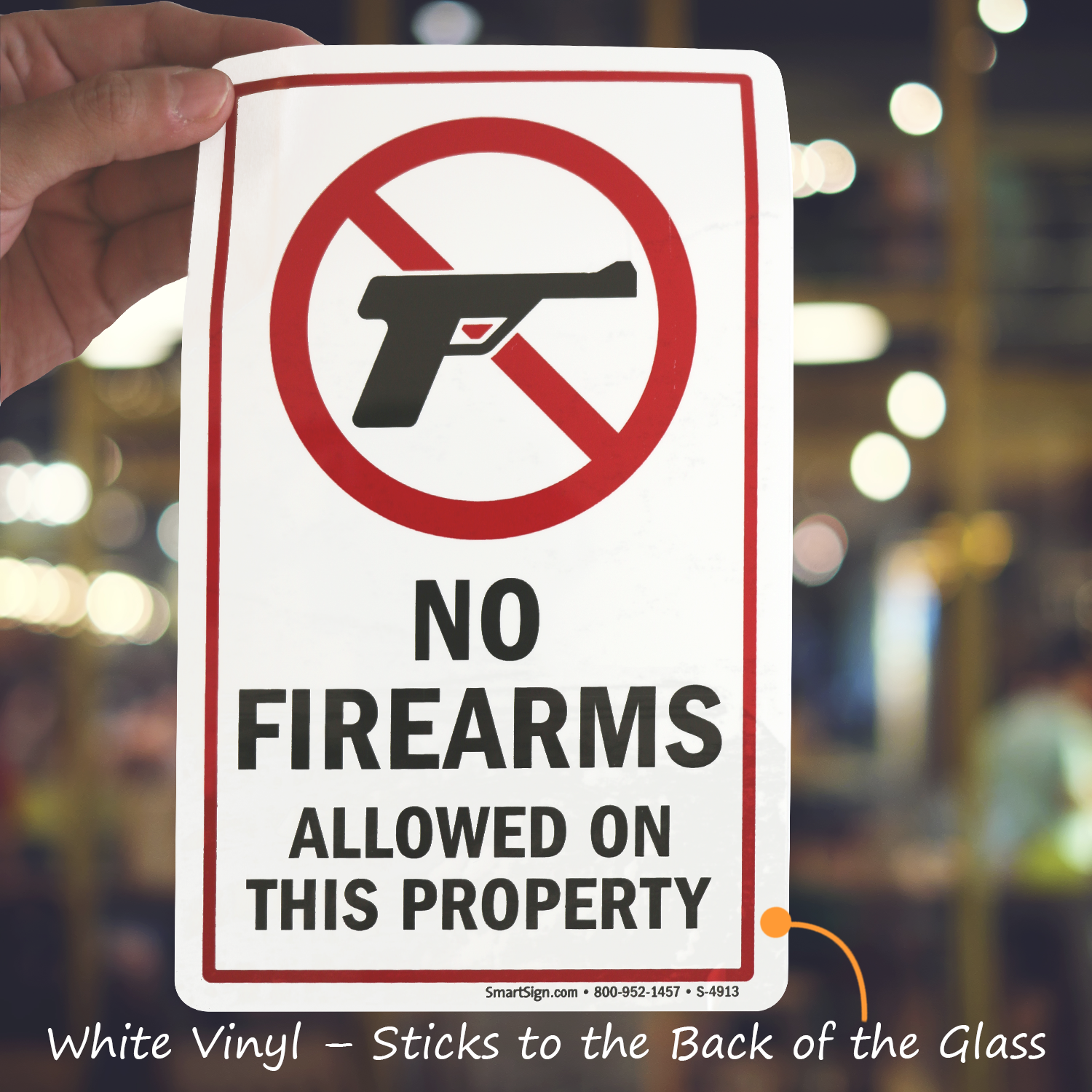 Window Decal: No Firearms Allowed on Property (with symbol) S-4913