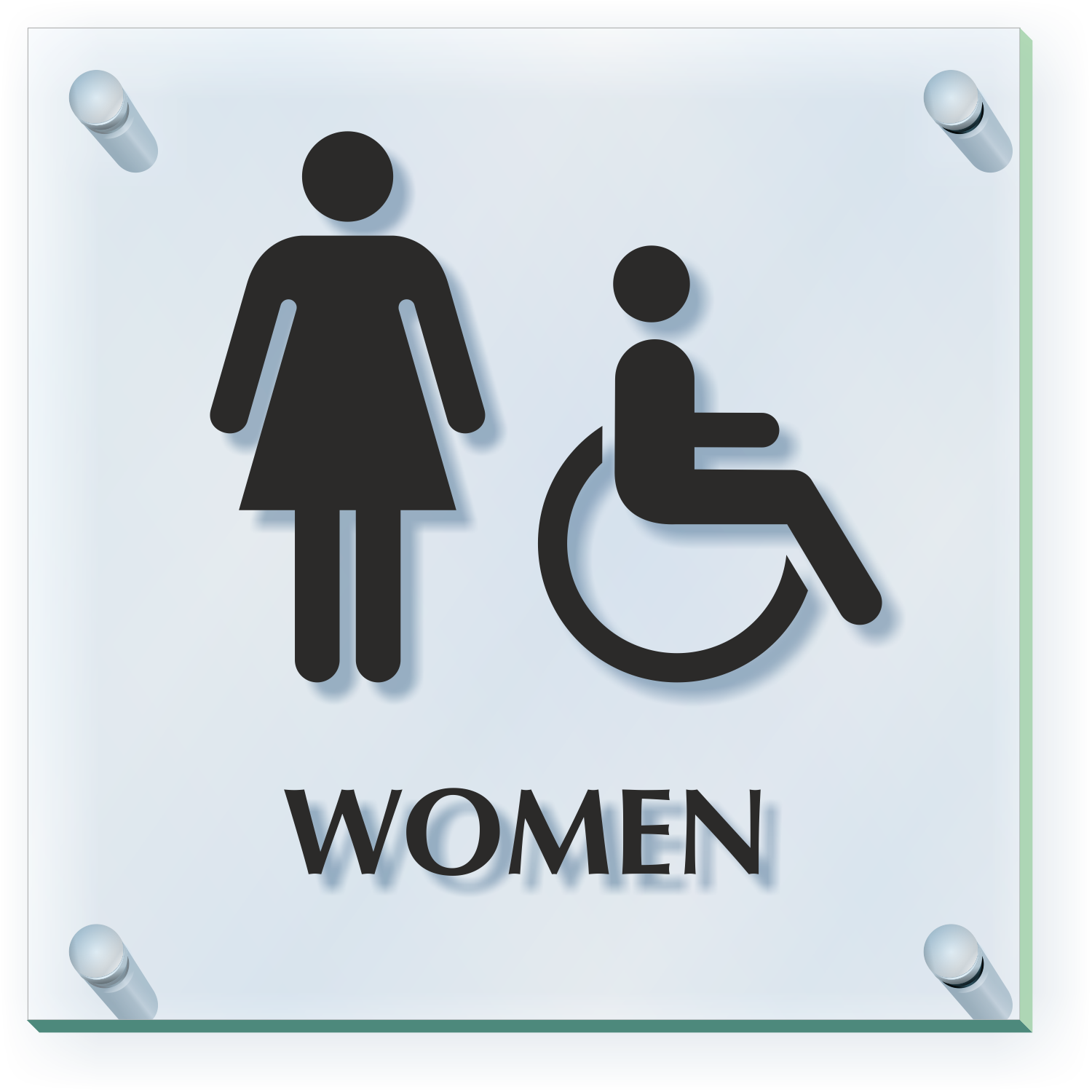Clear Acrylic Sign: Women Restroom with Handicap Symbol SE-7494