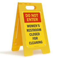 Getting a women's restroom clean can be a tedious task when patrons are going in and out. Give yourself some time to clean and get the job done with this easy to fold sign.
