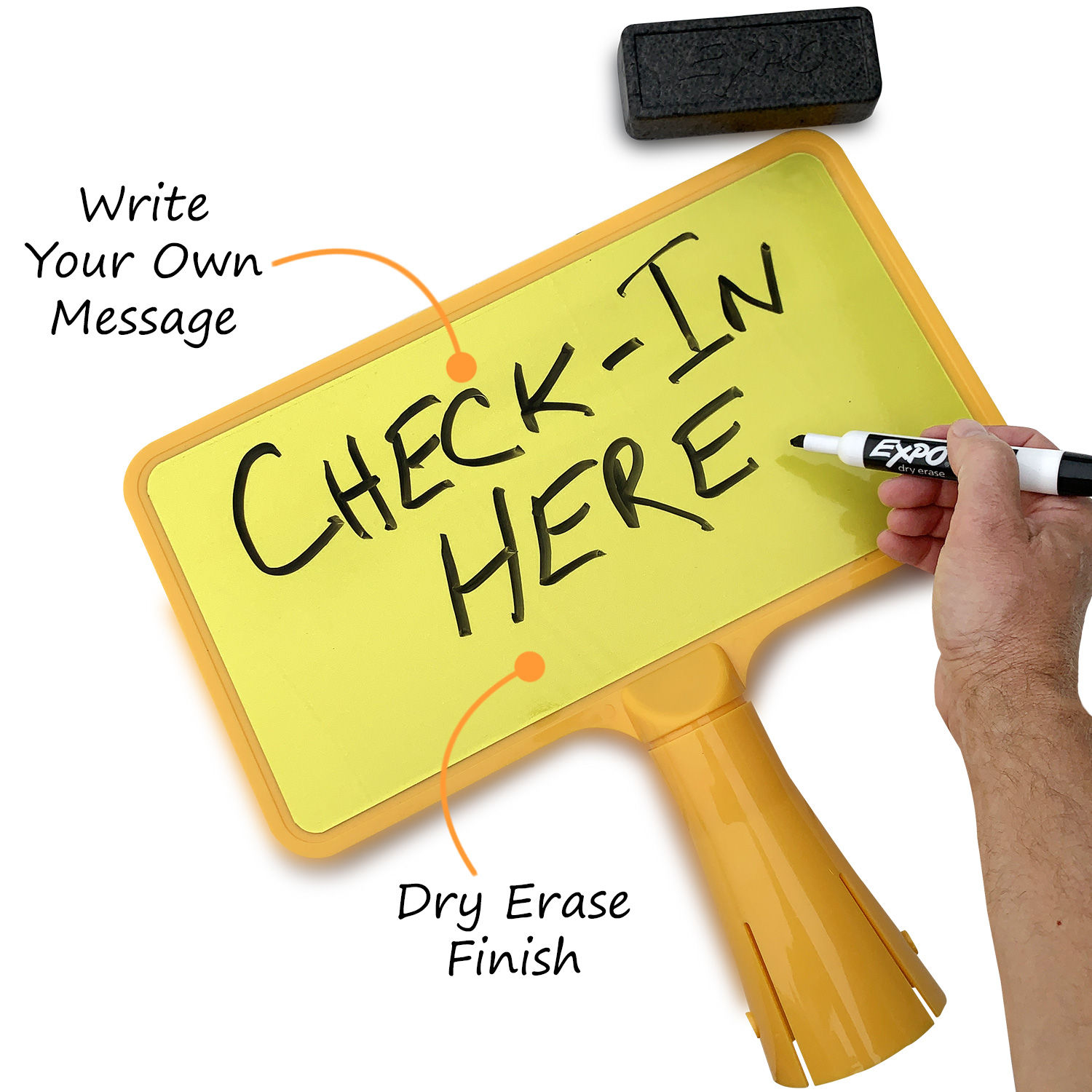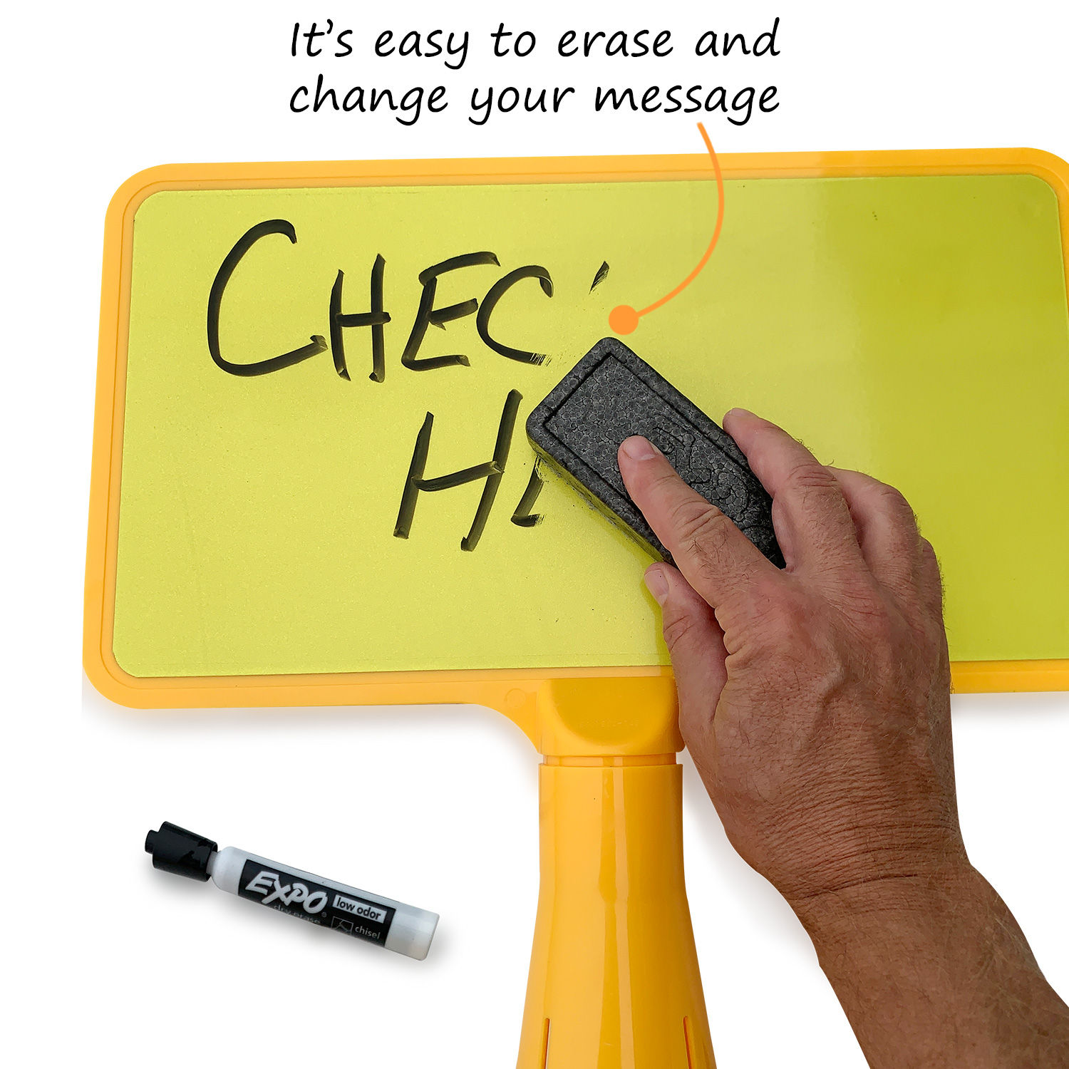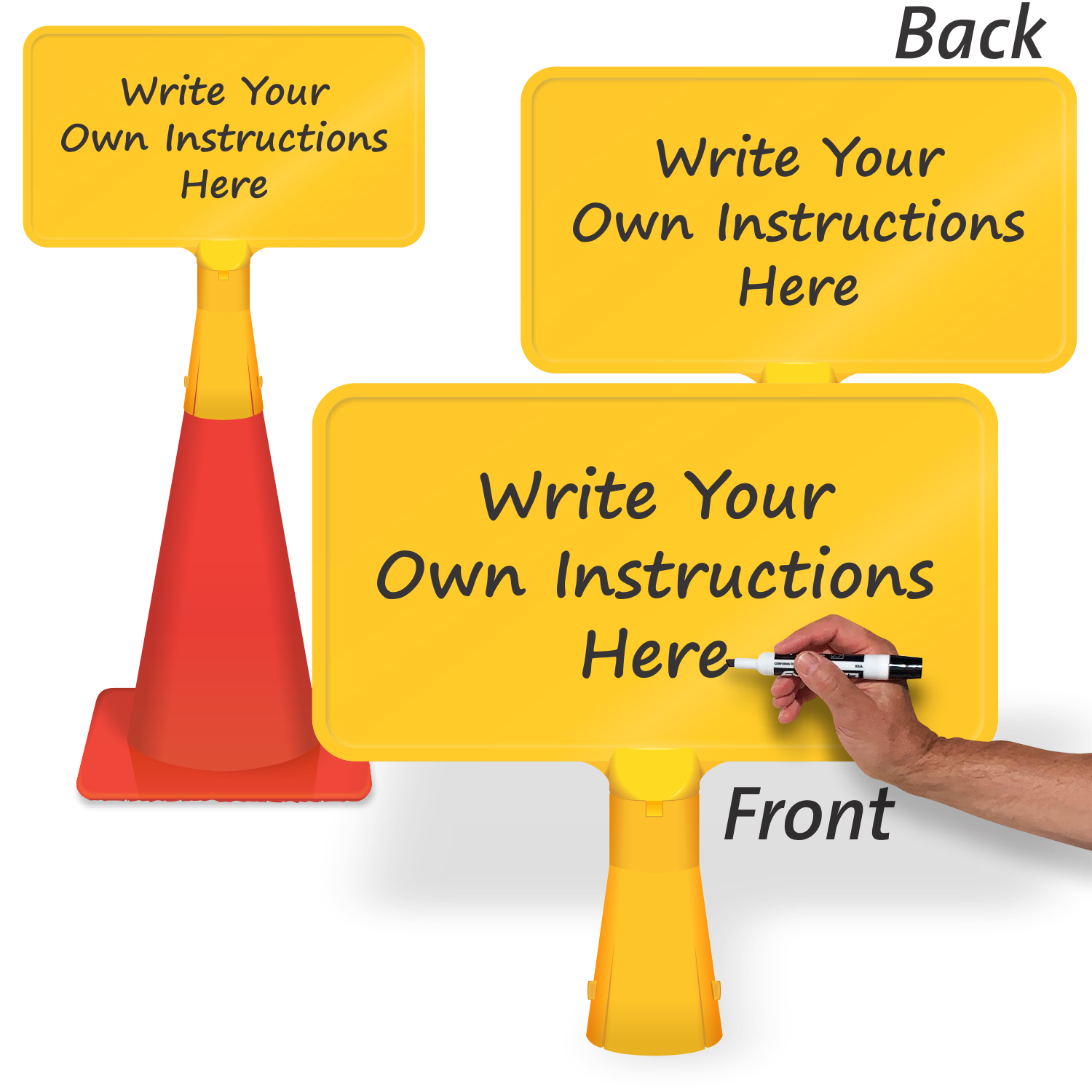 Need to frequently change your instructions? Use this writeable, no-tip, portable Traffic Cone Sign. Write on the blank sign board with a marker.