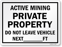 Write-On Active Mining Sign: Private Property, Do Not Leave Vehicle Next (Add Your Text) Ft S2-5076