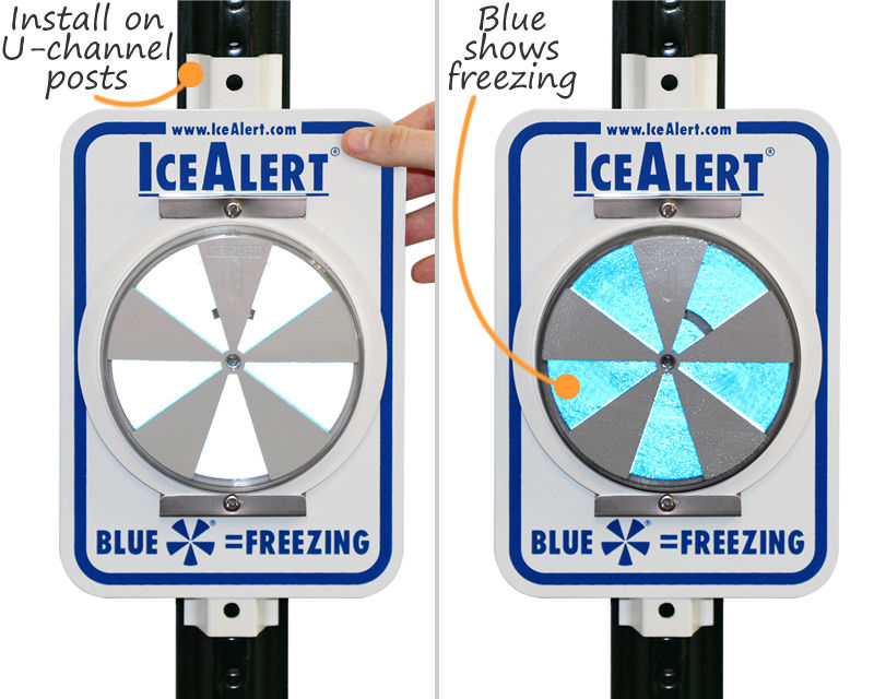 While the sign itself is self-explanatory, to further ensure that everyone understands the meaning, you can add the supplemental ice alert signs that are specifically designed to convey the functionality of the indicators and reflectors. These signs tell people that icy/freezing conditions prevail when the indicators/reflectors are blue.