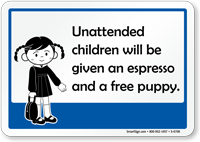 Who's with your children right now? Post unattended children signs to remind parents or teachers to always keep an eye on their kids. Even why they try to pretend they're adults, children still need help sometimes.